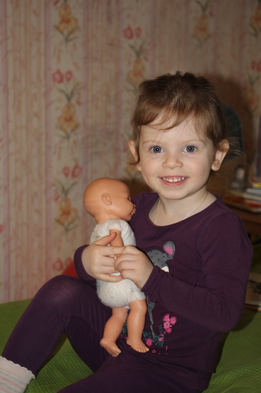 А еще очень любит песенкам подпевать, этот интерес у нее намного, много раньше появился, но сейчас в самом разгаре.