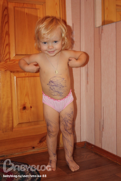 Я думала что такое только у нас)))Сегодня подруги говорила, что растёт татуировщик)))оказывается не только у нас рисовать везде в том числе и на себе - это любимое занятие)))