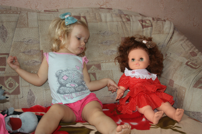Мы не пропали, это я лентяйка!Так давно не писала, что теперь не знаю с чего начать...Вкратце. Алина полностью отказалась от памперсов, с полутора лет научилась сама ходить на горшок, памперсы использовали только на прогулку и на сон. Теперь и ночью спит без них. Разговаривает хорошо уже 2 мес наверное..слова все новые повторяет, фразы...я болдею))) Причесываться не любит, хвостик задерживается на голове только пару часов, а то и меньше, но это все-равно прогресс! Раньше и 5 мин он не задерживался! Есть любимая заколка"сердечки", её ещё можно заколоть)))