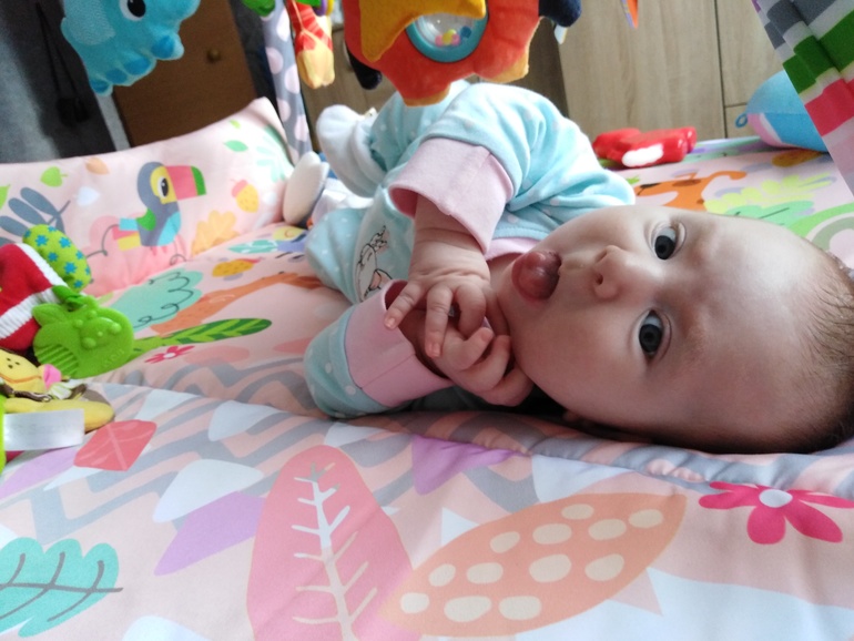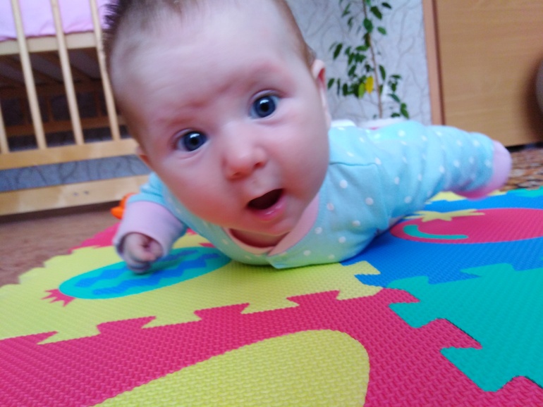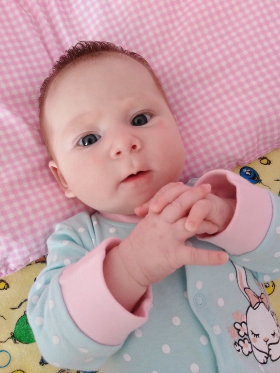 2. Когда она позавтракала и лежит на столике в ожидании утренних процедур, она так счастлива и так громко об этом сообщает. Она поняла, что у неё есть голос. Ей нравится её голос, она любит его тренировать. Так вот, лежит это чудо, визжит и пищит на разные лады, а голосок такой тоненький, но такой звонкий, ну вот прям котёночек мяукает. И смотришь на эту красоту, видишь её улыбку, слышишь эти её радостные визги и сама начинаешь радостным хохотом заливаться.