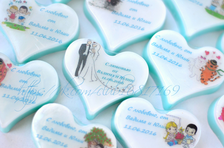 Мыльные бонбоньерки изготавливаются по вашему индивидуальному заказу в цвет и стиль вашего праздника. Имена, или любая другая надпись и изображение. Казалось бы мелочь, но именно такие детали создают неповторимую атмосферу.