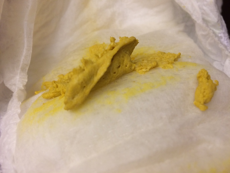Уважаемые мамы,подскажите,пожалуйста,столкнулась с такой (как мне кажется) проблемой.Малышка на ГВ,сразу отмечу свою диету-в основном гречка (после риса замечаю у неё сильнее колики по ночам),говядину и индейку на пару,суп соответственно те же ингредиенты,хлеб без дрожжей,сыр,масло не ем вообще,на завтрак овсянка на воде,чай (иногда с молоком),Марию (вот тут увлекаюсь),и редко печёное яблоко.Даю мелкой эспумизан-пару раз в день когда совсем ей плохо,колики мучают с 2 недель.А вот со стулом полная фигня (простите),со старшей был нормалтный,жидкий,а тут какой-то кусочками и жирный что-ли..как замазка оконная,запах кислый но чём-то отдаёт точно,фото (не для слабонервных:)) прилагаю)Педиатр говорит-ну бывает,меня этот ответ не устраивает,но не понимаю в каком направлении идти...