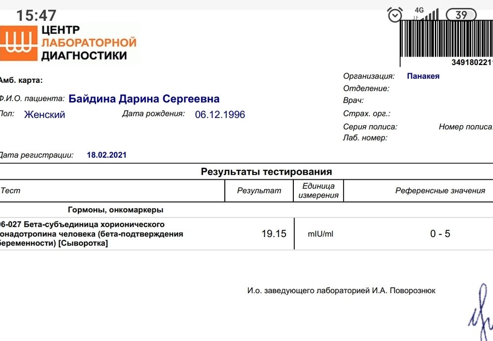 Всем привет. Значит ситуация такая: хчг за два дня до задержки был 19.15 mlm. Задержка была 5 дней. Тесты показывали //. Ярчали постепенно. На 5 день задержки пошли мес. Я бумага бхб. На второй день кровотечения сходила на УЗИ. Сказали там ничего нет. Сегодня 4 день кровотечения, решила сделать тест. Он стал ещё ярче чем был. Как понять что это может быть ?? Ведь по узи сказали что ничего там нет ??