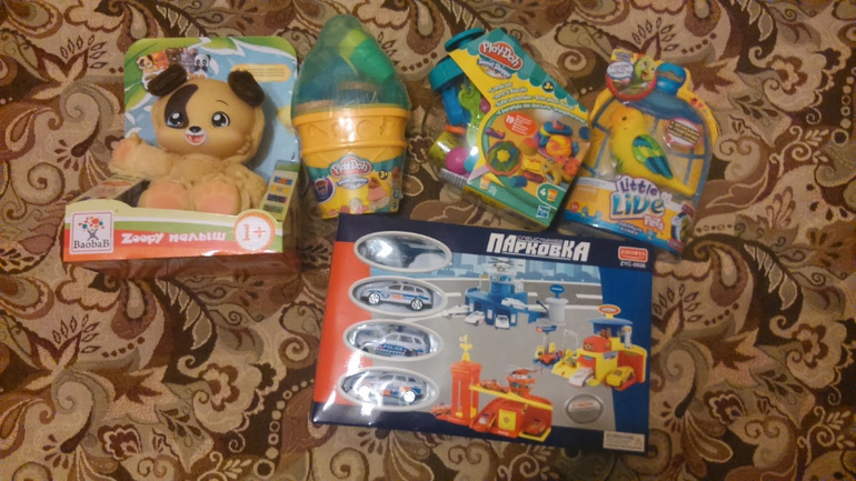 От нас родителей купили по набору Плэй До...я делала сама такой пластилин, но насмотрелась еще видеообзоров про наборы Плэй До, там куча всяких формочек и шприцы...будем лепить))) меня это тоже увлекает и ребятишек очень...