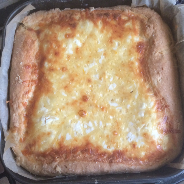 Отправляем в духовку до готовности. После выпекания остудить. Подавать теплым. Резать пирог тоже лучше немного остывший. И еще готовить лучше в круглой форме))) Моя круглая в этот раз занята)))