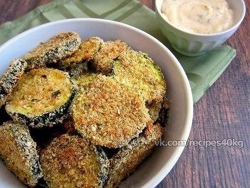4. Каждый ломтик кабачка обмакнуть во взбитое яйцо и запанировать в сырной массе.