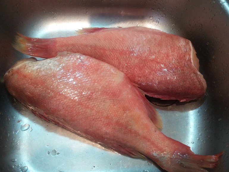 Попался мне морской окунь в магазине. Купила пару рыбок на семью: