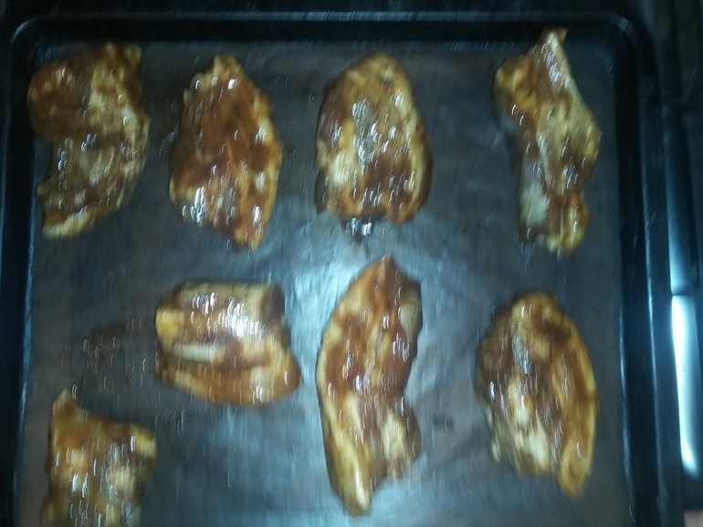 Оставить минимум на час (я люблю на ночь). Разложить на решетке гриля или на противне: