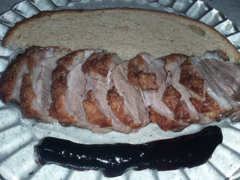 А потом нарезать сочную вкусняшку. Я с хлебушком люблю и клюквенным соусом: