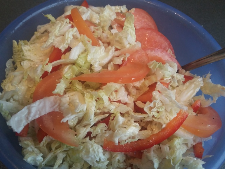 Для гарнира идеально подойдет салат из свежих овощей с зеленью: