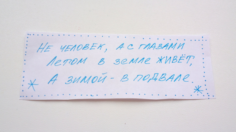 Под столом на кухне ничего не было. Я прикрепила записку не на полу под столом, а на столешнице изнутри. Поэтому Тигран нашел не сразу записочку.