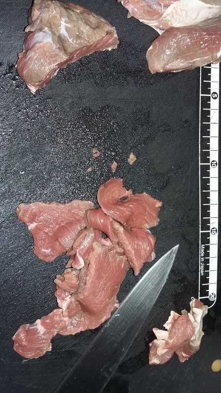 Примерно как на фото. Размер не менее 4 см. Удалить жилки и жир с мяса.