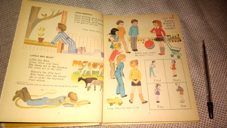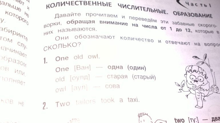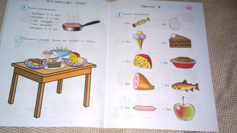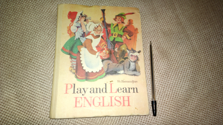 учебник в советском стиле. Наверное, сейчас уже такое не купить, можно поспрашивать в букинистических магазинах или у учителей английского языка. Нашему ребенку интересно рассматривать старые учебники, тем более, что я подогреваю интерес: говорю, что таких книг сейчас не купишь! И он тут же начинает спрашивать:" А это как произноситься? А что тут написано?"