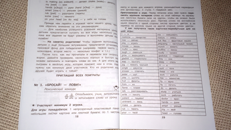 И эту книгу я купила не для того, чтобы научиться правильно произносить английские слова, а для того, чтобы найти интересные методы и игры для изучения английского вместе с ребенком. И в этом плане книга меня устроила.