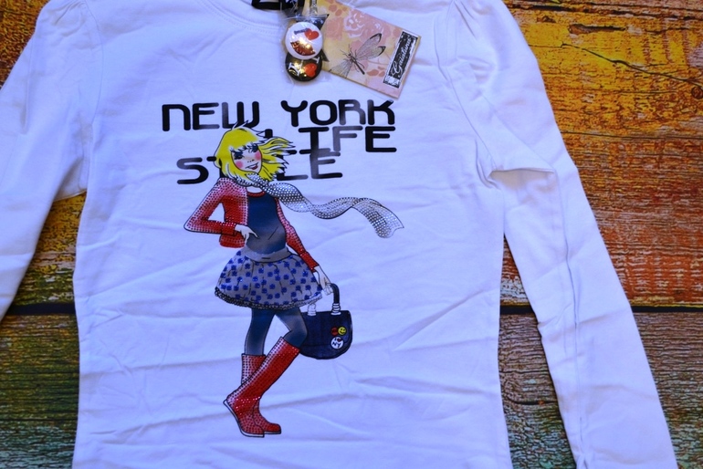 10) Футболка+красный лонгслив+ брошь стрекоза. Размеры: TG.34 (134 см). Цена: 1350 руб.