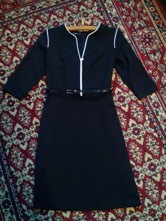В отличном состоянии материал тянется возможно и на больший размер,юбка на подкладке. Длина 101см При росте 168 до середины колена Почта 1000