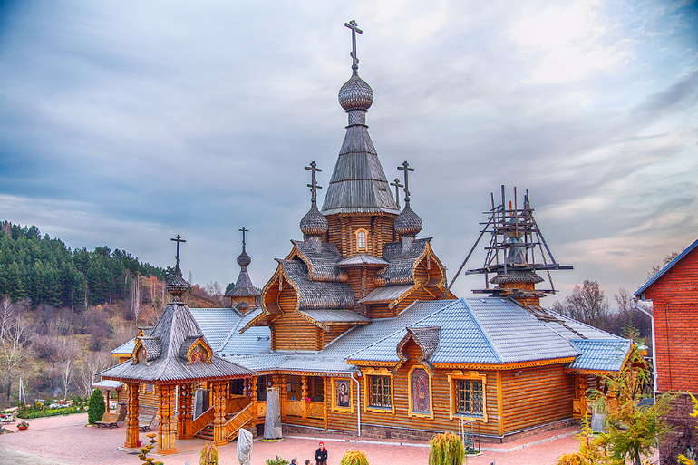 1. Это наш знаменитый храм, полностью сделанный из дерева, единственное место в Кузбассе, где разрешено совершать отчитку. Их проводят еще в Троице-Сергиевой Лавре и в Москве. Отец Василий благословение на это получил 16 лет назад . А в одном из окон однажды в октябре проявился образ Богородицы.