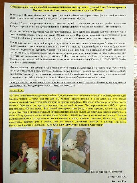 Девчонки, девочке срочно нужна помощь!!! Она живет и учится в нашем городе Кемерово!!!Мама девочки-подруга моей хорошей знакомой!! поэтому я уверенна, что информация не ложная!!! времени на шанс очень мало!!! Подскажите, куда лучше разместить этот пост, чтобы увидело большее количество неравнодушных людей? Пожалуйста, сделайте репост!!