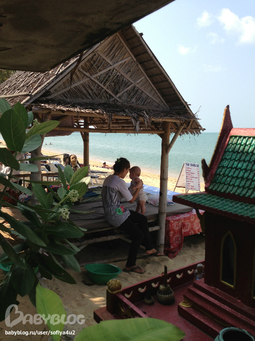 Есть тенистое дерево с лежаками. Написано, что стоит тут расположиться 100 батт, но к нам никто так и не подошел. Встретили под деревом малыша Марка с мамой и бабушкой с нашего резорта.