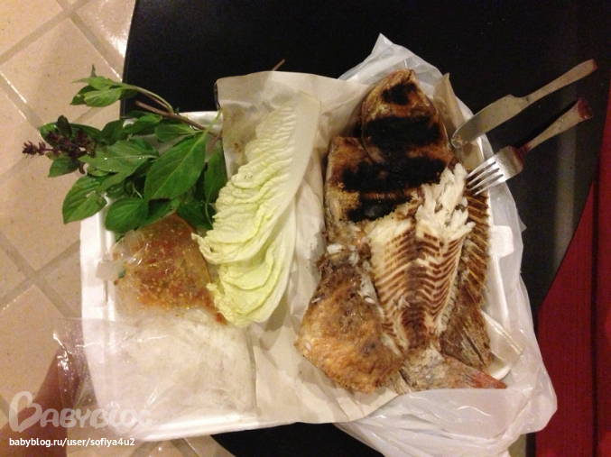 Но на ужин мы эту вкуснятину не стали брать, обошлись рыбой. Ред сниппер гриль 260 батт. В довесок дали лапшу, салат, специи. Накормили 3 рта:) Стоит внимания.