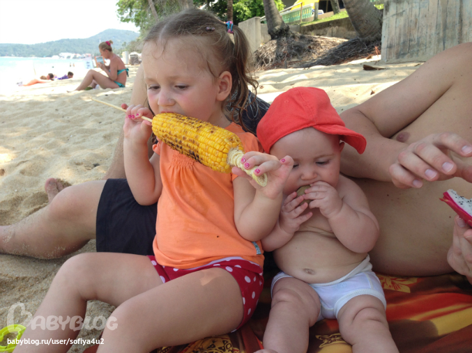 По всем пляжам ходят тайцы и продают кукурузу и очищенные фрукты.