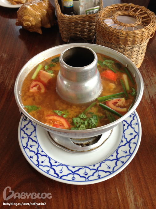 Оригинальная подача супа ТОМ ЯМ. Подогревается. "Горишь" сначала снаружи, а потом пробирает и изнутри:)