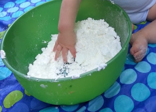 Если до зимы еще далеко, сделайте снег сами! Можно лепить комочки или просто играться с пушистым «снежком». Все, что нужно, - это смешать кукурузный крахмал с пеной для бритья. Можно добавить немного красителя, и тогда «снег» станет цветным.