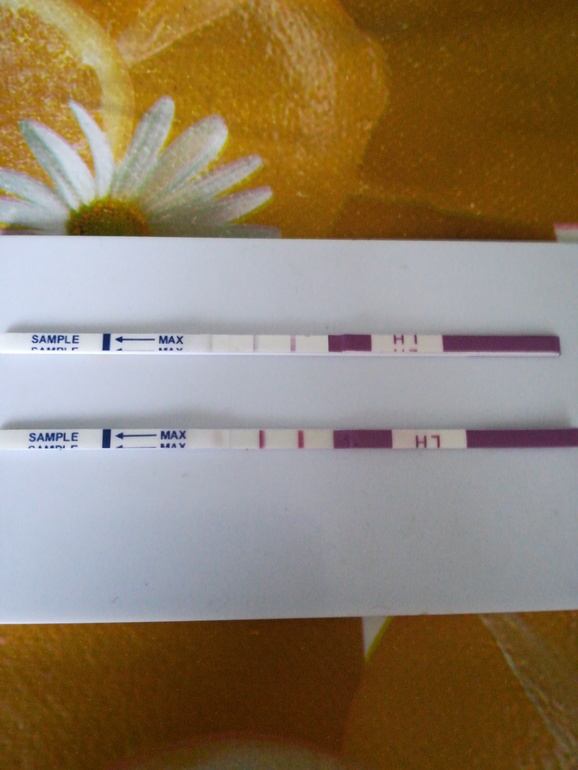 Планируем с августа.Был нерегулярный цикл вплоть до 31-50дней. Назначили последние 3 месяца Дюфастон (для нормализации цикла). Все эти 3 месяца делала тесты на овуляцию и никогда не видела //. Сейчас, закончила приримать Дюф, первый цикл после него, заказала на алике тесты на О, т. К. Там в упаковке больше штук и по цене хорошо получается. Так вот начала делать 3 дня назад. Сегодня 12дц. Вчера был ПА. И наконец-то я вчера увидела // но одинаковые, сегодня утром решила сделать снова и увидела ярче чем контрольная. Посмотрите пож. (всерху вчерашний вечером, снизу сегодня утром) и подскажите когда будет овуляция: сегодня вечером-завтра утром? Сегодня иду на узи (по поводу кисты прявого яичника), думаю спросить когда там у меня О, приближается ли? Там ведь видно будет? Так хотим мальчишку (если получится днвочка естественно не расстроимся). Планируем ПА сегодня вечером ещё и завтра утром.