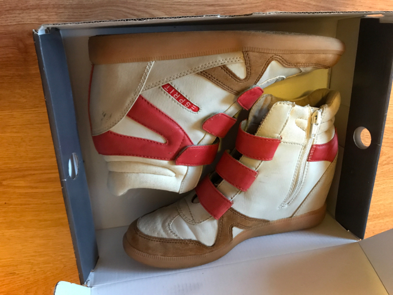 Esprit 40, на стопу 26,5 будет хорошо (полный 39, 40). б/у мало, хорошее состояние экв 2000