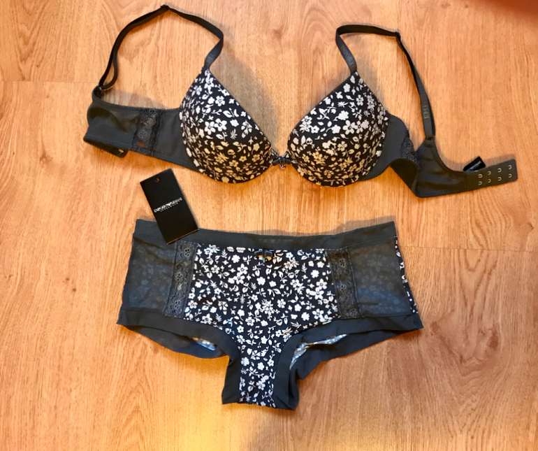 Комплект белья армани размер 75 В и низ S. Новые, но я их постирала. Оказалось мне большевато(( Почему-то я решила на 70 В нормальн* будет 75, но все таки свободновато в объеме4500