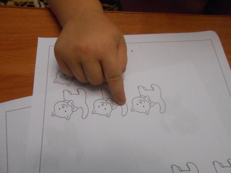 Рассмотрели плакат, узнали какие бывают породы кошек. Нашли лишнего в ряду, повырезали, нашли нужную заплатку.