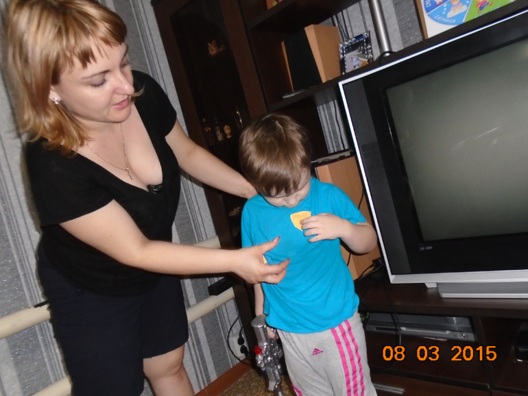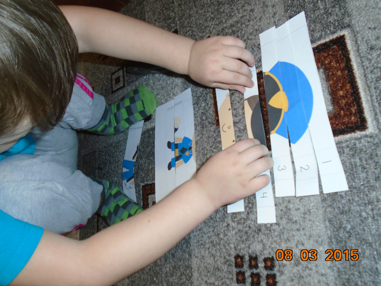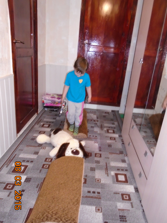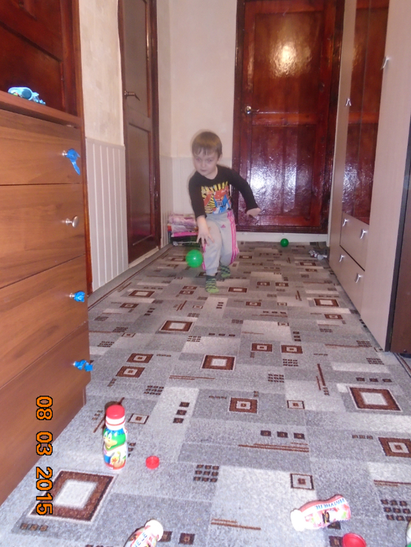 Наше занятие мы начали с настоящей полосы препятствий. Сбивали мячики баночки из-под растишки и кидали мячики в кузов машины. После успешного прохождения полосы и маме и сыну выдали жетоны полицейских. Мы звонили в полицейское управление, рассказывали о плохих поступках игрушек и о том, как сын провел воспитательную беседу. Объяснил, что игрушкам нарушать законы и правила поведения нельзя. Роль полицейского управления сыграла сестра, она изменила голос и сын совсем не узнал ее. Причем разговаривали они в разных комнатах, но при этом так громко говорили, что их слышно было и без телефона. Дети этого не заметили, только папа смеялся. Мы составляли фоторобот, выполняли приказы, отданные начальником полиции, ловили преступников, переговаривались по рации. Все задания сын выполнял с удовольствием, ведь настоящий полицейский, с жетоном.