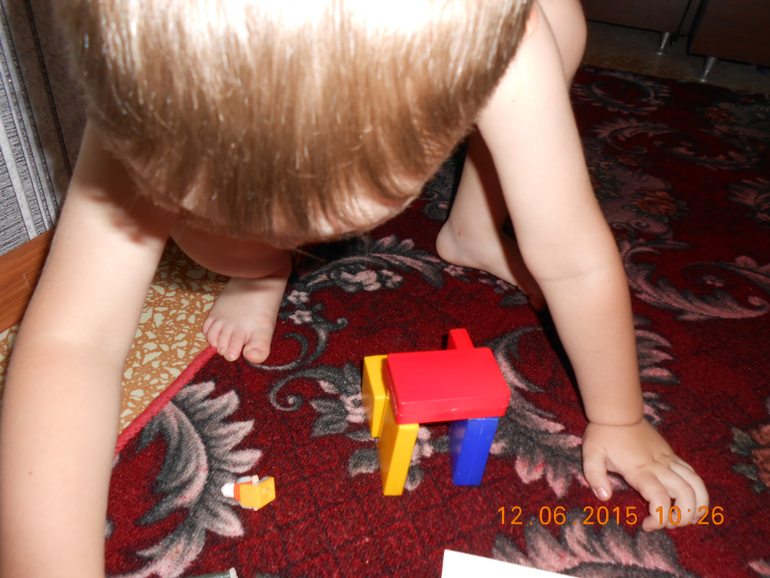 Усидчивости у сына на все не хватило, зашли в дом и там продолжили играть дальше. построили грибок из блоков Дьенеша.