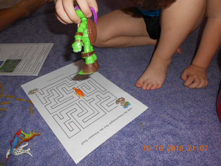 Мы рассмотрели, как жизненный путь динозавров, помогали динозаврикам пройти через лабиринт.На помощь нам пришел Черепашка-нинзя, увлечение сына на сегодняшний день