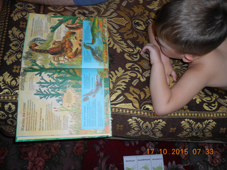 Утро началось с того, что сын принес книгу и пока мы собирались на работу,попутно читали с ему о динозаврах.