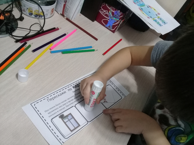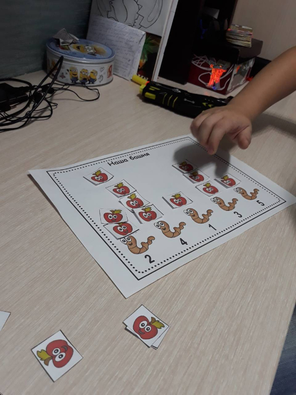 Все задания первой недели я разделила на 3 части. И утром на подоконнике сына ждал файл с заданиями от Гномыча. Сын удивился, но согласился помочь.Задания некоторые я усложняла: мы клеили, вырезали, приклеивали, считали в обратом порядке, складывали в обратном порядке.