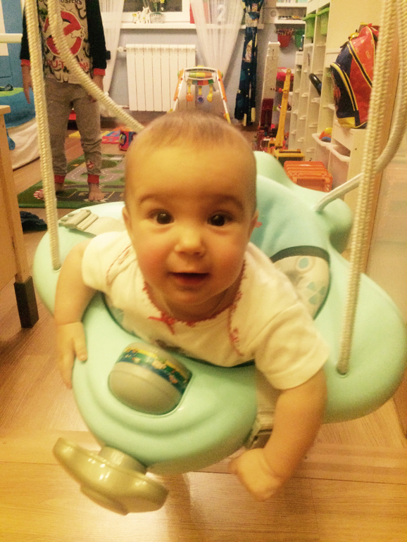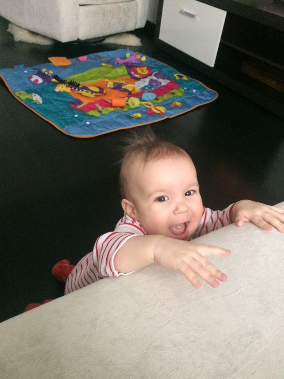По развитию пока никаких выдающихся способностей. Все также ползает на четвереньках, но уже с нереальной скоростью, пытается сесть, но пока никак, пытается вставать у опоры. Наконец-то начала произносить что-то новенькое, а то все это время только писки-визги и ничего вразумительного. Сейчас в ходу "да-да-да", "ка-ка-ка". Много смеется :)