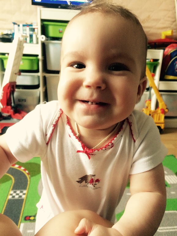 А в перерывах между нашими делами уже больше месяца мы играем в игру "мамин хвостик". Просто невозможно. С Ваней такого не было. Он сам мог спокойно поиграться минут 30-40. Эта же маруська куда я, туда и она. И не просто сидит и смотрит, а лезет по ногам, просится на ручки, беру, слезает обратно, и снова просится. И так по кругу. Чтобы она смогла посидеть поиграть, мне нужно тусить в детской, тогда она ползает, играет, и изредка подглядывет за мной, чтоб никуда не убежала. Только стоит мне хоть на минутку выйти, все, пипец, ор и давай ползти искать меня. Читала, что как раз примерно в 8 месяцев у них кризис страха, что мама может уйти и не вернуться. Но у нас что-то он сильно затянулся. Надеюсь, это не навсегда!