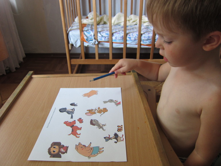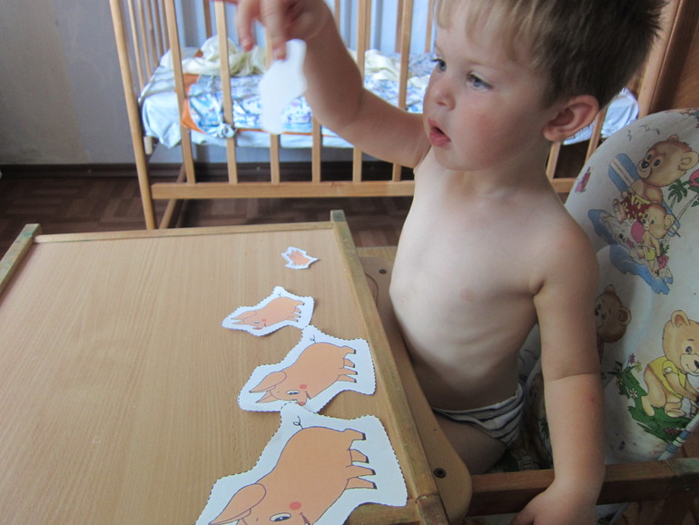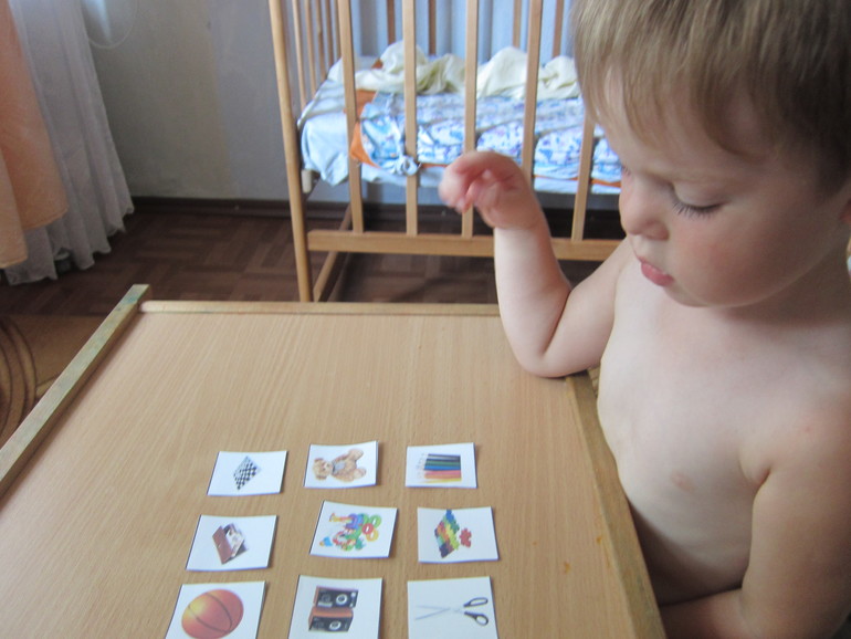 Сделали цепочку из 9 картинок, Максим застрял на пятой картинке с игрушками и сбился!