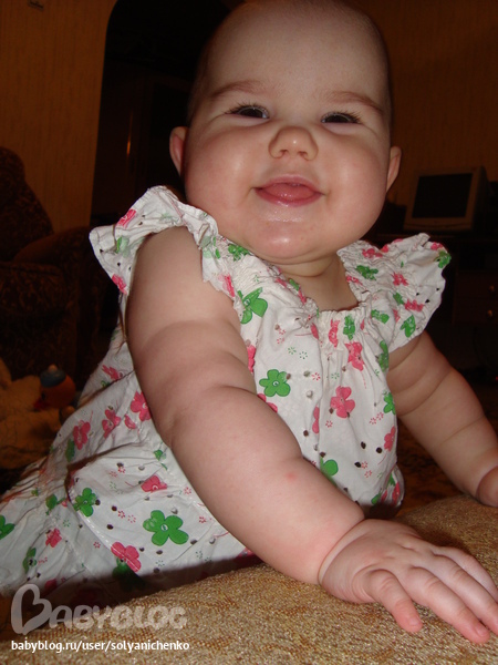 афигеть уже 7... невериться))) уже такая большая и самостоятельная. каждый день иследует квартиру, пытается залезть в ящички)) блин это так здорово)) и немного фоток