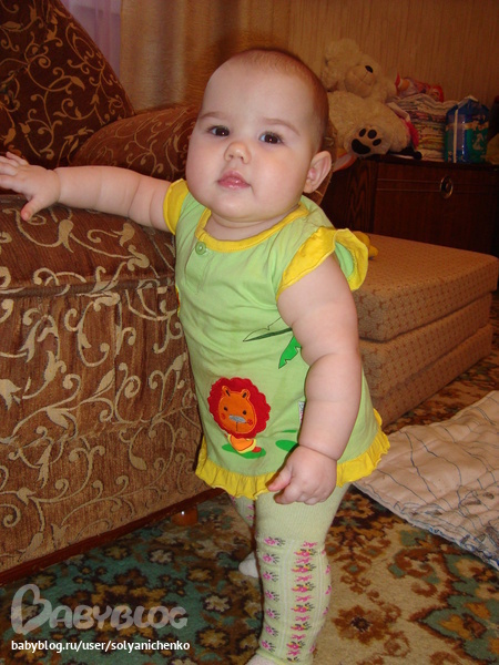 сегодня, 24.02 в 6месяцев 8 дней Николь сама встала))) началось все с того что проснулись мы сегодня, папа на работе, я побоялась что пока пытаюсь доспать она ползает. положила ее на одияло напол, дала игрушки, сама лежу на диване и одним глазом смотрю на нее. игралась игралась, а потом увидела меня подползла к дивану, ручками вцепилась и встала. я подумала что это так... что больше так не получится,а вечером когда положила ее в кроватку, смотрю она корячится.. взяла цифровик и даже получилось заснять все это)))) вот так наверно скоро пойдет)) уже совсем большая стала