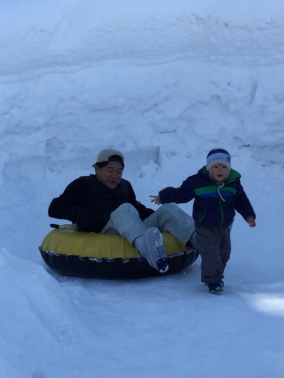 Да, сами вдоволь накатались. Снег есть не разрешила. Лизнул пару раз и все.
