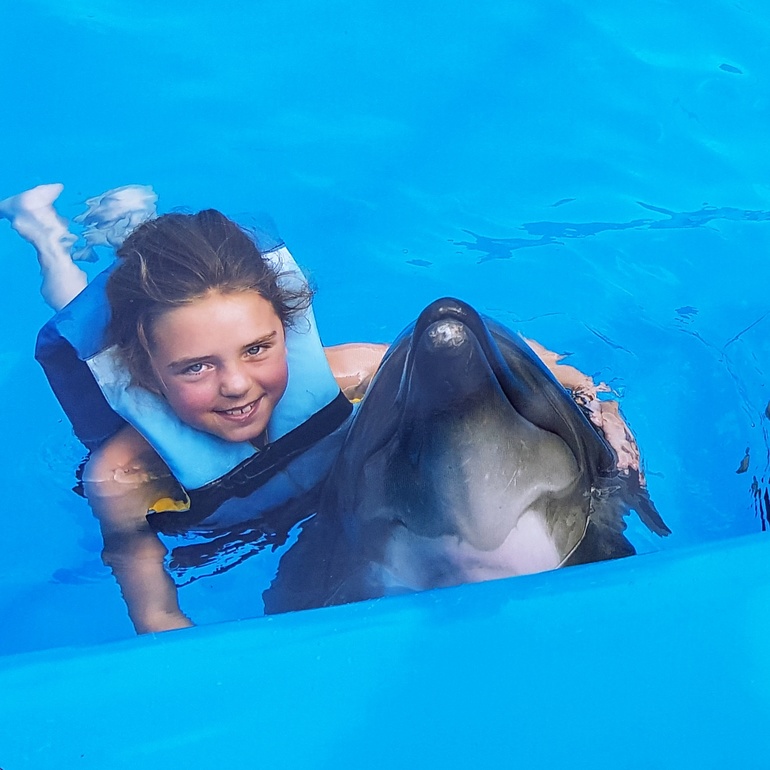 И последнее ..вчера Слава с Настей плавали с дельфинами. Настя сначала так испугалась до слез и истерики... но потом не вытащить было!