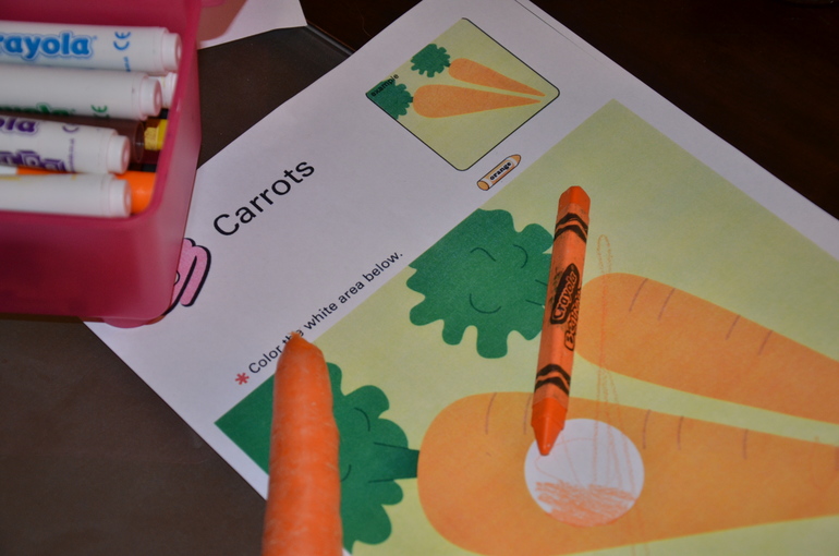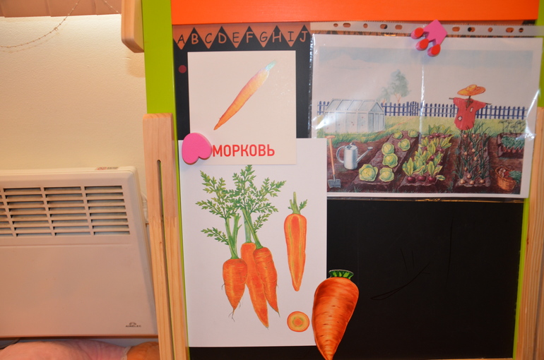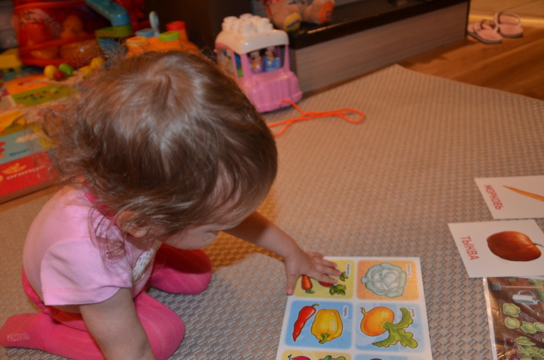 Есть у нас фруктово-овощное лотто, выбрала картинки с морковкой и тыквой.. Дочка справилась за считанные секунды, лотто очень любим и играем почти каждый день.