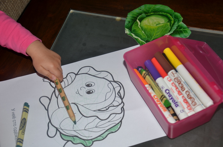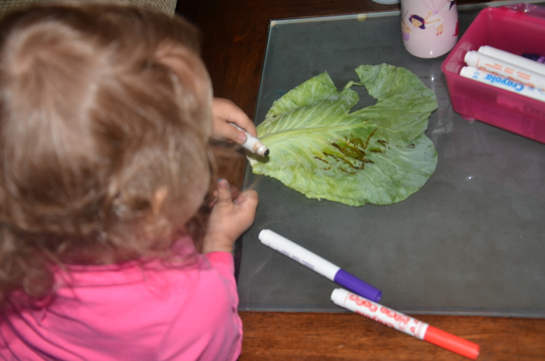 10. Раскрашивали и рисовали (не просто на бумаге, а на капустном листике!) карандашами, красками и маркерами
