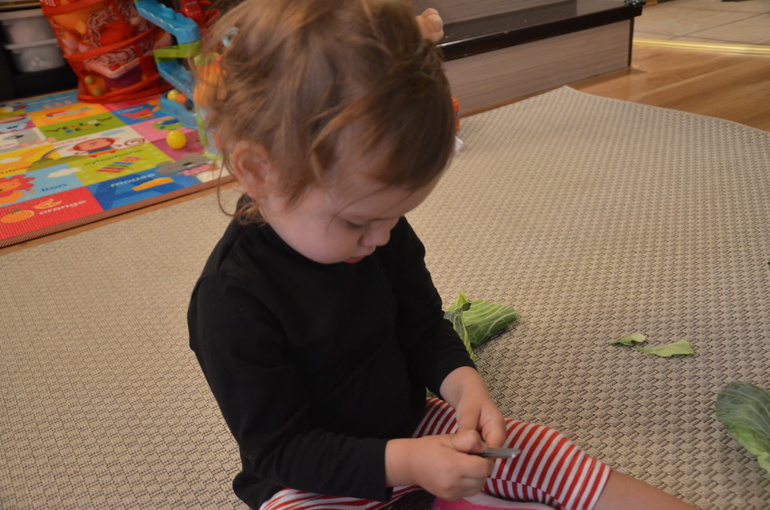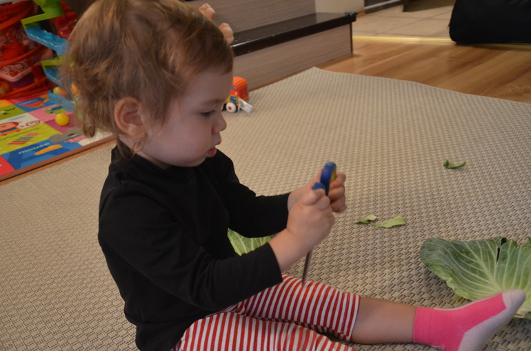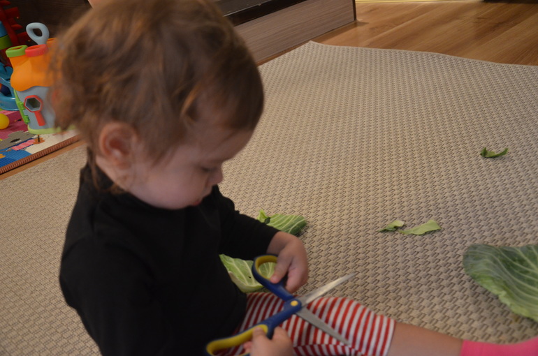 1. Достала дочке капусту для ознакомления