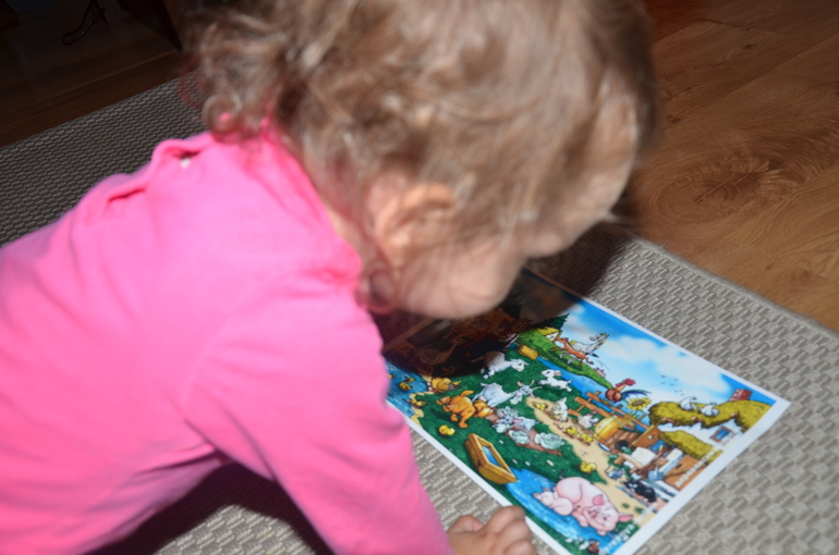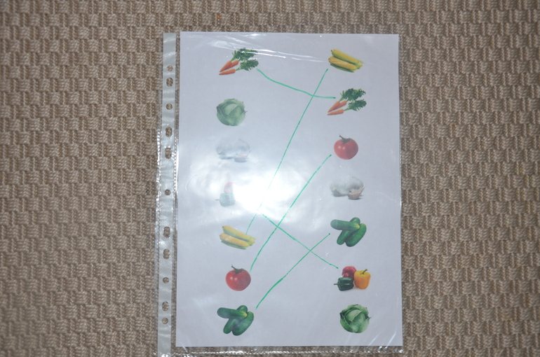Такое занятие на поиск пары для дочки сложное, она его еще не понимает - не может провести линию между одинаковыми предметами.. Но на занятии я нашла выход - сначала назвала все предметы из левого столбика и потом выборочно просила найти предмет справа. Дочка все показала безошибочно! Правда, доделали не до конца - мы уезжали вечером ненадолго..