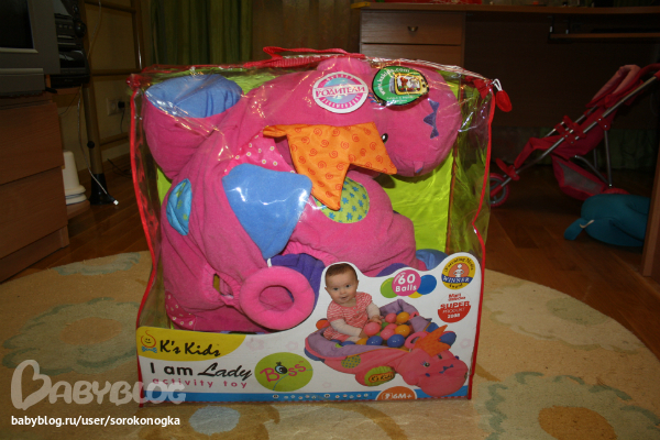 Комплект поставки развивающего центра "Boss!": Дракончик и 60 цветных пластиковых шариков.