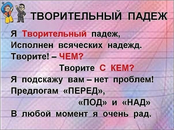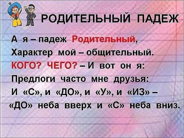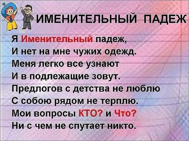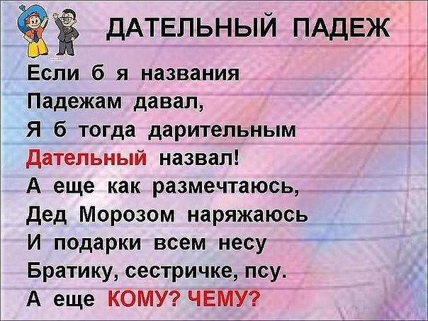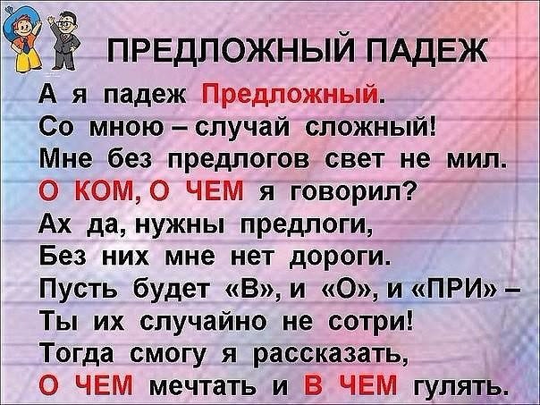 vladuxa 8 лет Падежи в стихах. Школа Посмотрите еще 20 записей на эту тему Отменить Ответить Насилие и агрессия в школе: как справиться? ГОВОРИМ ПРАВИЛЬНО. 50 ЛОГОПЕДИЧЕСКИХ СТИШКОВ ДЛЯ МАЛЫШЕЙ Чаты Беременных Выберите чат: Январята-2026 Февралята-2026 Мартята-2026 Апрелята-2026 Майчата-2026 Июнята-2026 Июлята-2026 Августята-2026
