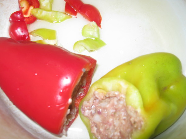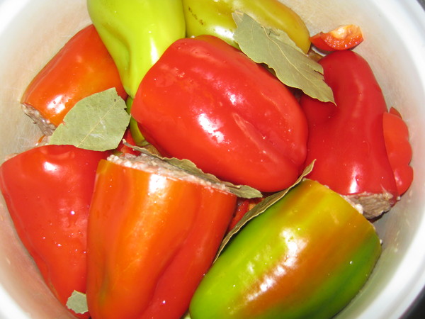 1. Моем перцы, срезаем "попки", начиняем и выкладываем 1-й слой (на дно кастрюли чуточку масла растительного)